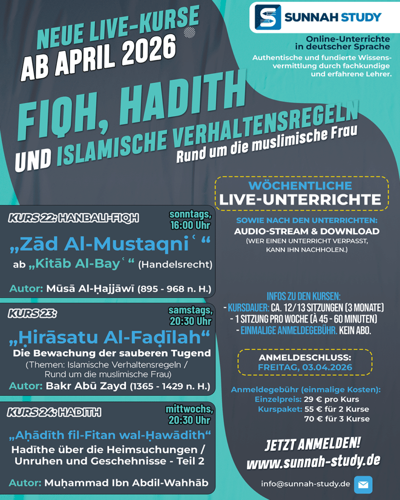 Wir bieten unter anderem verschiedene Online-Unterrichte, Online-Kurse und Online-Seminare zu unterschiedlichen Wissenschaften an, angefangen von der arabischen Sprache bis hin zu den Hadithwissenschaften. Es gibt ein breites Spektrum an Kursen u. a. in den Themenbereichen: Arabische Sprache und Grammatik, ʿAqīdah, Ḥadīth, Muṣṭalaḥ Al-Ḥadīth (Hadith-Terminologie), Ḥanbali-Fiqh, Tafsīr und Uṣūl Al-Fiqh.