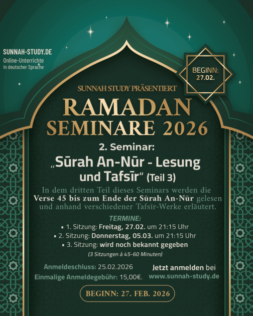 NEU:„Sūrah An-Nūr – Lesung und Tafsīr“ (Teil 3) – RAMADAN-SEMINARE 1447 (2026) bei SUNNAH STUDY