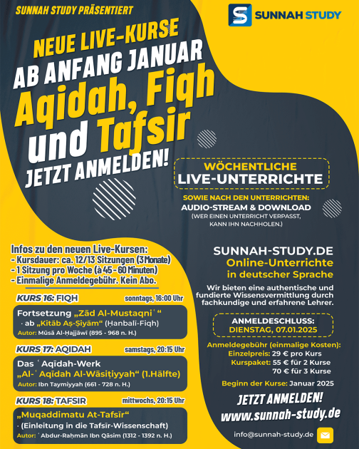 Kurs 20: Fortsetzung: Das ʿAqīdah-Werk „Al-ʿAqīdah Al-Wāsiṭiyyah“ (2.Hälfte) (Live-Kurs)